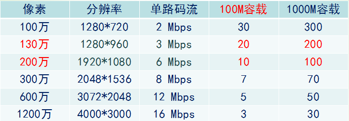 尤其,130万、200万像素的摄像机应用最广泛。请把100M带宽最高可容载130万摄像头20路,200万摄像头10路记住~